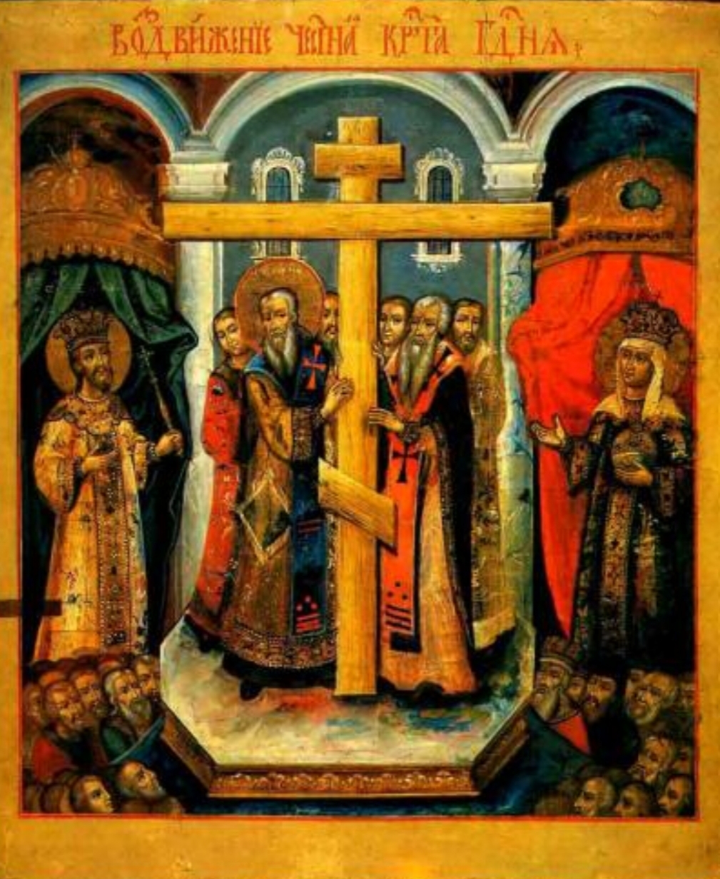 KrstovdanUzdizanje časnog krsta – Krstovdan. Ovoga dana praznuju se dva događaja vezana za časni Krst Hristov: prvo pronalazak časnog Krsta na Golgoti, i drugo povratak časnog Krsta iz Persije opet u Jerusalim. Obilazeći Svetu Zemlju sv. carica Jelena odluči da potraži časni Krst Hristov. Jedan stari Jevrejin, po imenu Juda, jedini je znao mjesto đe se Krst nalazi, pa primoran od carice izjavi, da se  Krst nalazi zakopan ispod hrama Venere, koji je podigao car Adrijan na Golgoti. Po naredbi carice  razrušiše taj idolski hram, i kopajući na mjestu đe bijaše u dubini nađoše tri krsta. Dok je carica bila u nedoumici, kako da poznaju Krst Hristov, pored toga mjesta prolazila je povorka sa mrtvacem. Patrijarh Makarije tada reče, da postvljaju tijelo umrlog  redom na svaki od krstova. Kada tijelo umrlog staviše na prvi i drugi krst, ništa se ne dogodi. A kada umrlog staviše na treći krst on oživlje. Tako poznaše, da je to časni i životvorni Krst Hristov. Poslije staviše na časni Krst Gospodnji jednu bolesnu ženu i ona odmah ozdravi. Tada patrijarh uzdiže krst, da ga sav narod vidi, a narod sa suzama pjevaše: Gospode pomiluj! Carica Jelena napravi srebrni kovčeg i položiše u njega časni Krst. Kasnije kada car Hozroj osvoji Jerusalim, odvede puno naroda u ropstvo i odnese Krst Gospodnji u Persiju. U Persiji Krst je bio 14 godina. A 628. godine  grčki car Iraklije pobijedi Hozroja i sa slavom povrati Krst u Jerusalim. Došavši u grad Jerusalim car Iraklije je nosio Krst na leđima. No odjednom stade car i nije mogao ni koraka naprijed napraviti. Patrijarh Zaharija viđe anđela, koji zaustavlja cara da u raskošnom carskom odijelu ide i nosi Krst, i to onim istim putem po kome je Gospod, ponižen i bos, išao. To što viđe patrijarh reče caru. Car svuče sa sebe carske rize i u bijednoj odjeći i bos uze Krst, iznese ga na Golgotu, i položi u hram Vaskrsenja.