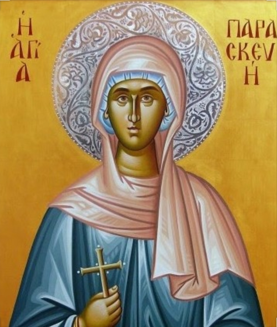 Sv petkaSveta Petka – Paraskeva. Rođena je u gradu Epivatu (Pivat)  između Silimvrije i Carigrada. Roditelji svete  Petke bili su bogati i pobožni hrišćani, osim svete Petke imali su sina Jevtimija, koji se zamonašio, i kasnije postao čuveni episkop Maditski. Pošto joj se upokojiše roditelji djevica Petka, koja je uvjek težila  podvižničkom životu Hrista radi, pošto napšuti roditeljski dom ode prvo u Carigrad, a potom u pustinju Jordansku, đe se podvizavala do svoje starosti. Ko bi mogao opisati sav trud, patnje, i iskušenja demonska, koja je pretrpjela tokom mnogih godina sveta Petka? Kad je ostarila javi joj se anđeo Božiji i reče joj: „ostavi pustinju, i vrati se u tvoje otečestvo: potrebno je da tamo predaš svoje tijelo zemlji, a dušom da se preseliš Gospodu“. Sveta Petka posluša glas s neba, ostavi pustinju, i vrati se u Epivat. Tu je ona živjela još dvije godine, stalno u neprestanom postu i molitvi, i onda predade duh svoj Bogu i preseli se u Rajska naselja. Upokojila se u XI stoljeću. Mošti njene čudotvorne nalaze se u Rumuniji, u gradu Jašu.