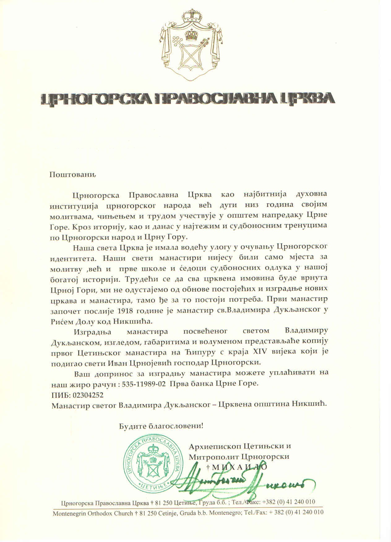 Poštovana gospodo svještenici Svete Autokefalne Crnogorske pravoslavne crkve,